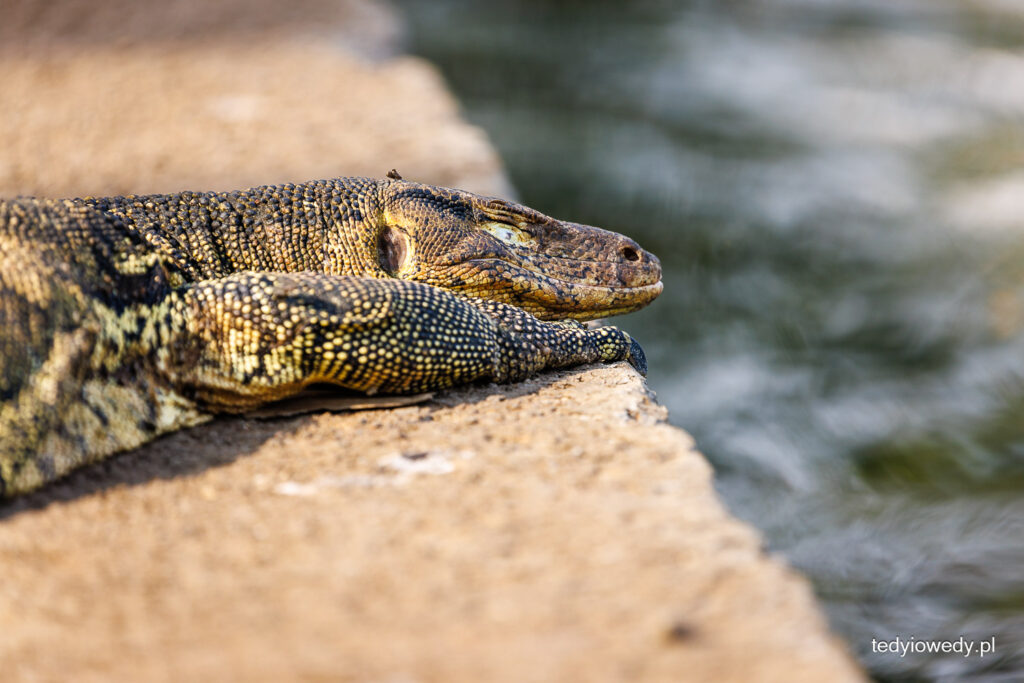 Lumpini Park – zielona enklawa w sercu Bangkoku. To wielki, blisko 60-hektarowy park, ze sztucznym jeziorem po środku. Jest najstarszym publicznym parkiem w Tajlandii, założonym w 1925 roku. Słynie z tego, że jego tereny zamieszkiwane są przez setki (400 osobników w 2016 roku) wielkich jaszczurek – waranów paskowanych. I my chcieliśmy zobaczyć te wspaniałe gady i wybraliśmy się do parku. Nietrudno było je znaleźć i zauważyć. Było ich mnóstwo. Niektóre wygrzewały się w popołudniowym słońcu, inne przechadzały się po trawnikach, kolejne pływały w wodach jeziora.
