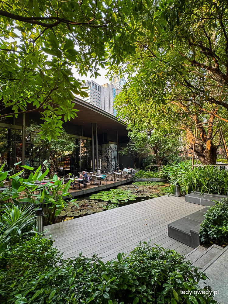Spacerując w okolicy parku Lumpini natknęliśmy się na wspaniałe ogrody przy hotelu Kempinski, warto zajrzeć – roślinność jest oszałamiająca: