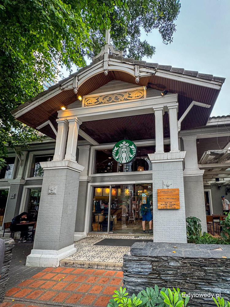 Na tej samej ulicy co hotel (Lang Suan) trafiliśmy do uroczej kawiarni Starbucks – urządzonej w zabytkowym, drewnianym domu: