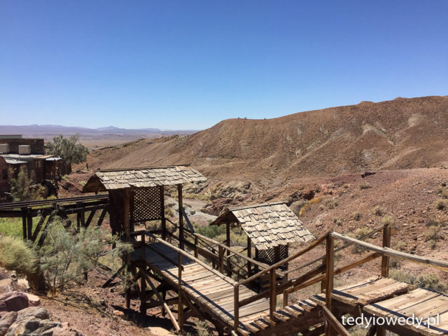 Niestety my trafiliśmy na środek dnia i było piekielnie gorąco – nie mieliśmy siły zwiedzać kopalni, spacerowaliśmy tylko od cienia do cienia, od klimy do klimy. Było ponad 40 stopni i położenie miasteczka na pustyni i na nieosłoniętym niczym zboczu góry mocno dawało się we znaki…
