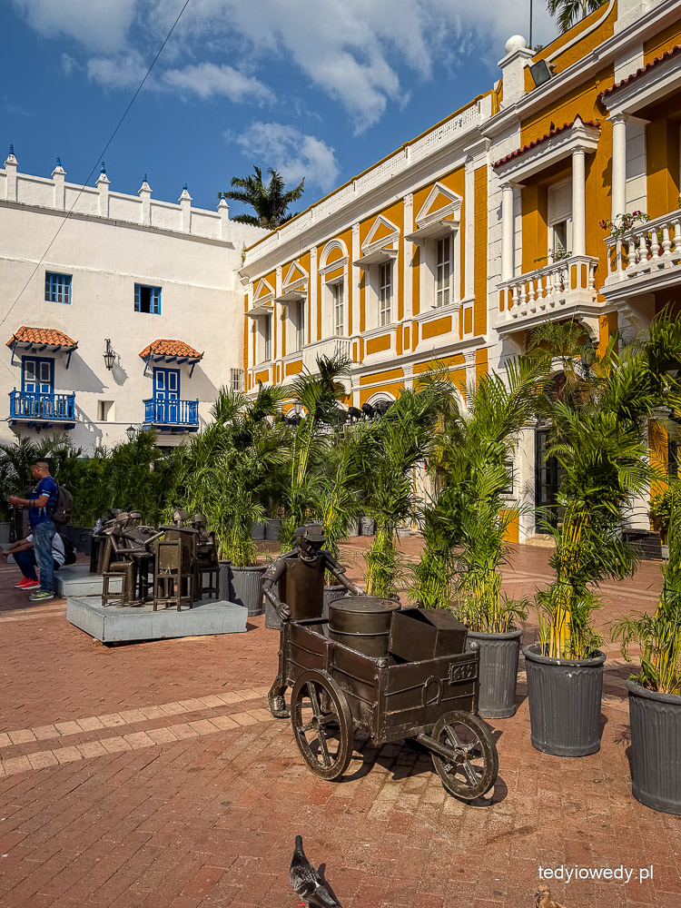 Ciudad Vieja czyli Stare Miasto w Cartagenie jest wspaniale odrestaurowane. Kolorowe kamieniczki toną w kwiatach, roześmiane palenqueras (potomkinie afrykańskich niewolników w trójkolorowych sukniach) zachęcają turystów do wspólnych fotografii, chłopcy sprzedają świeże owoce z załadowanych do pełna wózków, wszędzie spacerują turyści, z kawiarenek pachnie zachęcająco słynna kolumbijska kawa…
