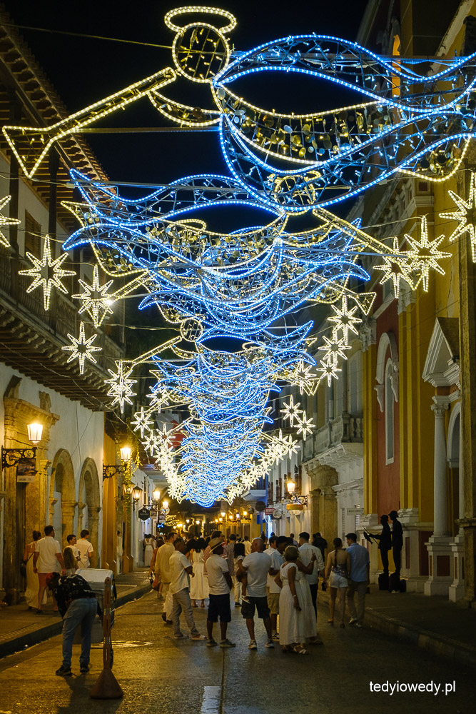 W Cartagenie spędzaliśmy wieczór sylwestrowy. Pojechaliśmy do centrum, aby tam powitać Nowy Rok. Cartagena była pięknie oświetlona, wszędzie świątecznie udekorowana, miała niesamowity klimat. Na ulicach rozłożono stoliki i krzesła i mieszkańcy miasta urządzali sobie spotkania sylwestrowe pod gołym niebem.
