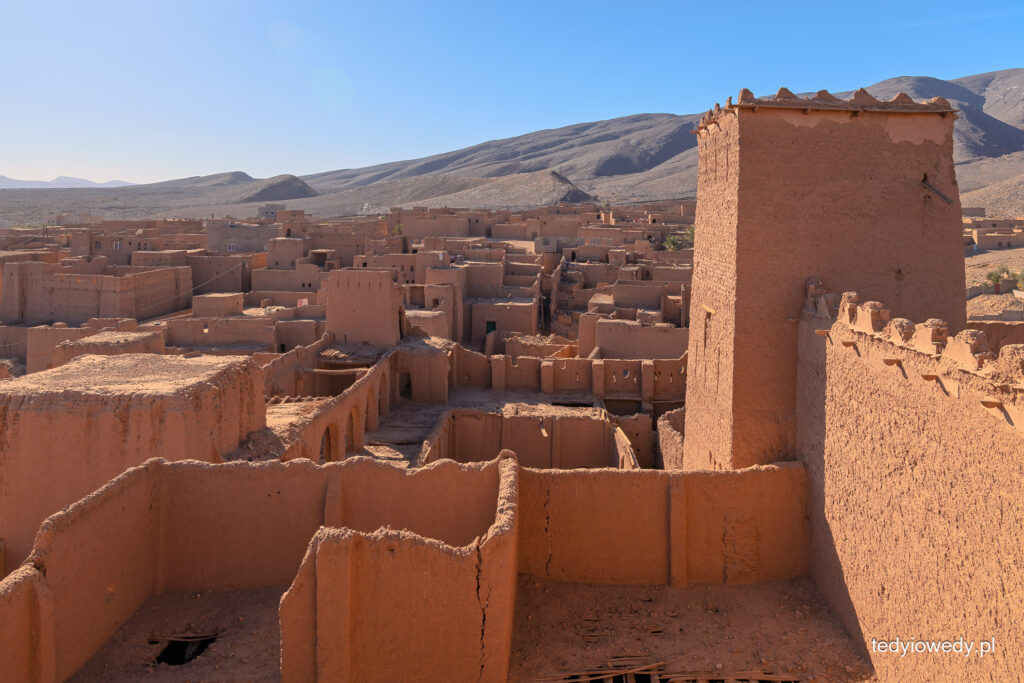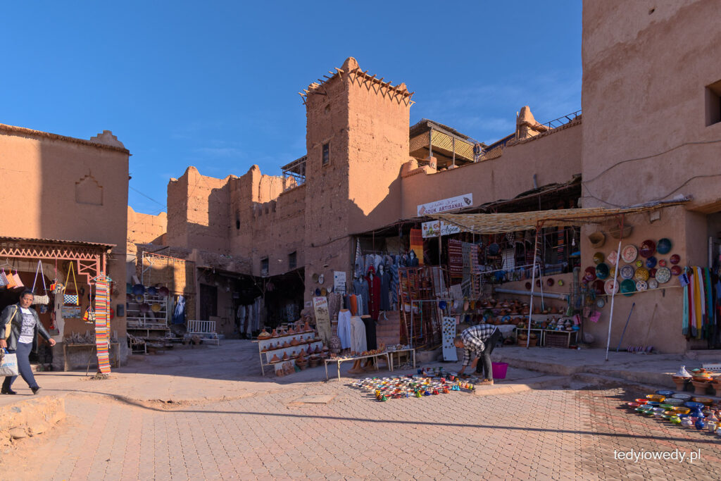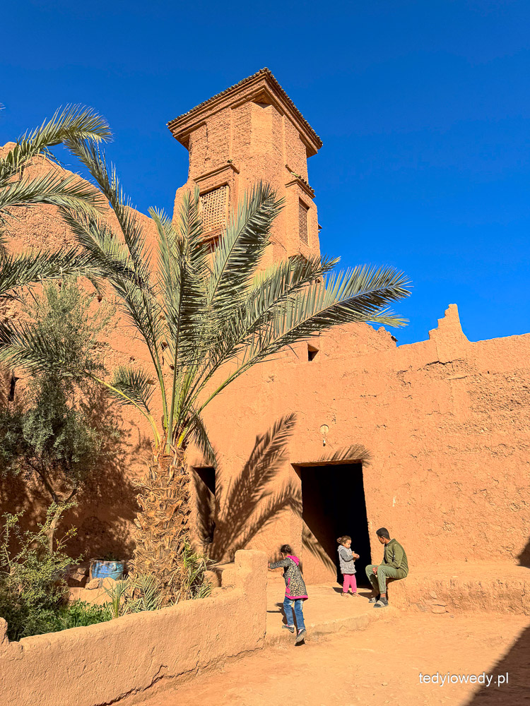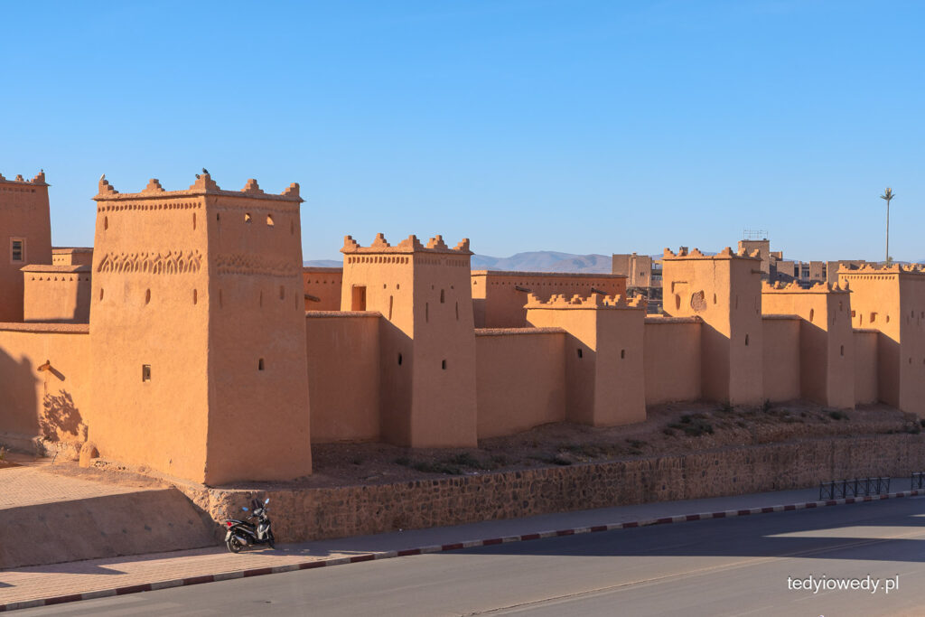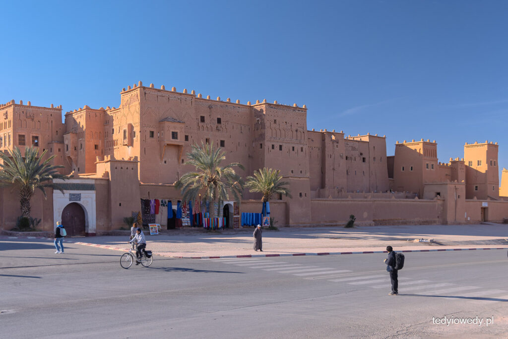 W Warzazat oglądaliśmy także wielką kasbę Taourirt (kasba to budowla obronna, forteca, która broniła miasta, ale także była rezydencją miejscowych władców, czy arystokracji). Otoczona wysokimi murami, powstała w XVII wieku; zbudowana z ubitej gliny zmieszanej ze słomą.