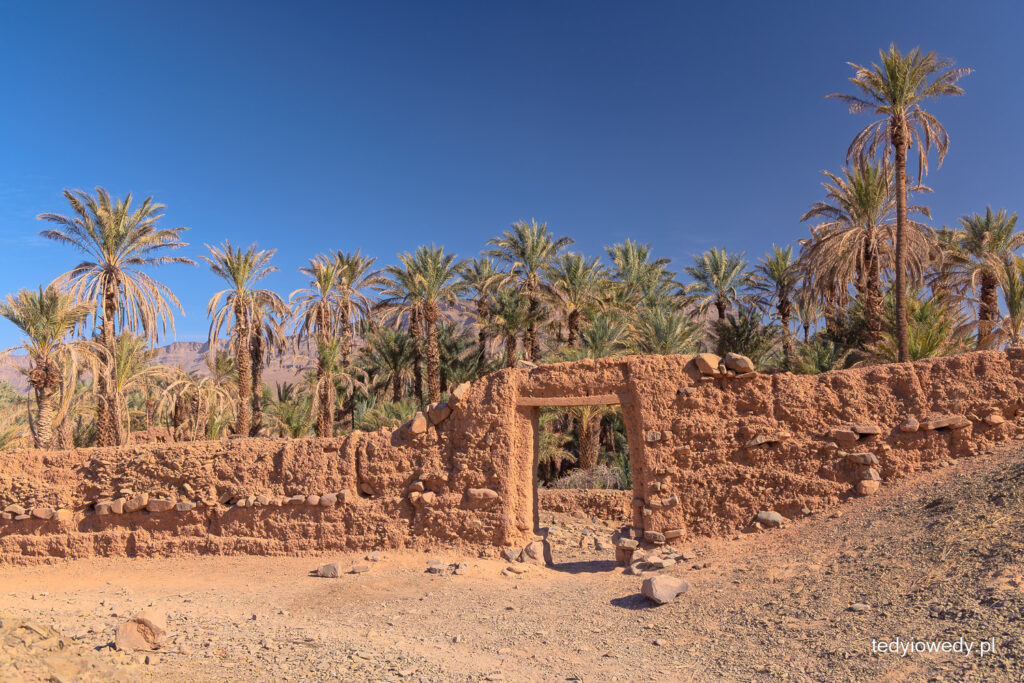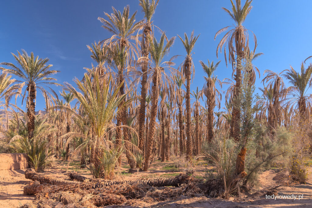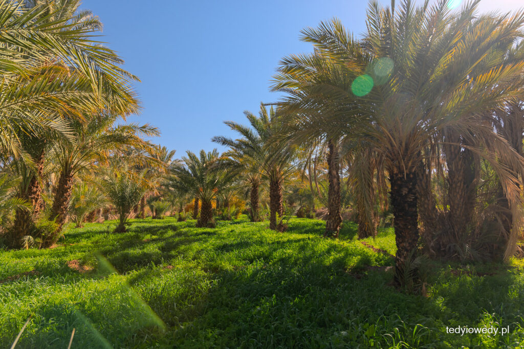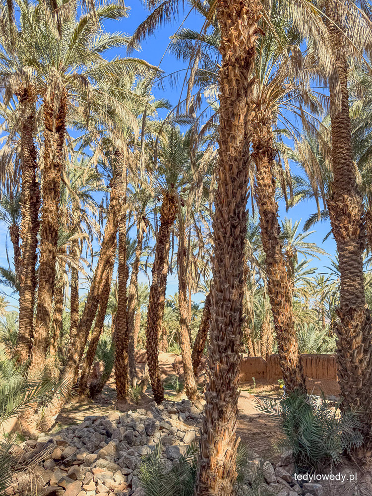 Dolina Rzeki Dara to ciągnący się prawie nieprzerwanie pas oaz. Zatrzymaliśmy się w jednej z nich, aby zobaczyć najprawdziwszą pustynną oazę. Rośliny są tam sadzone w warstwach – najwyższą stanowią palmy daktylowe, poniżej rosną owocowe drzewa i krzewy, a najniżej warzywa i zboża.