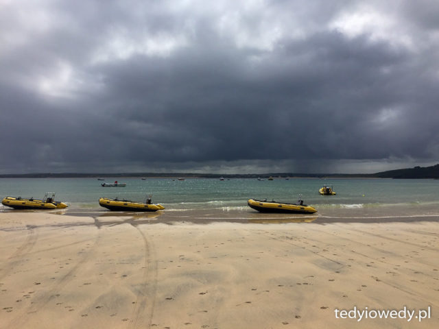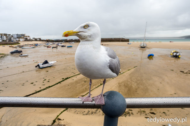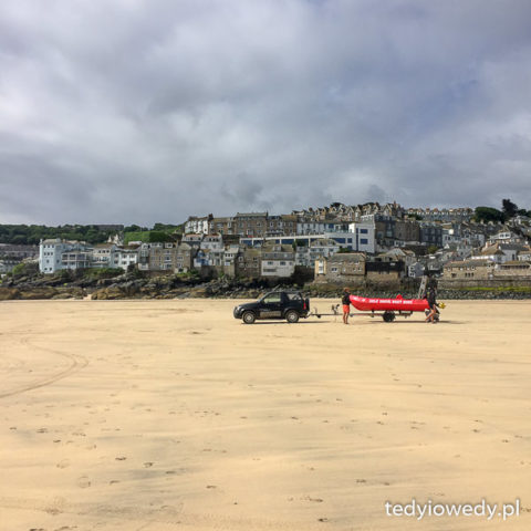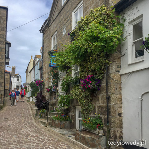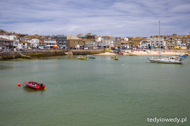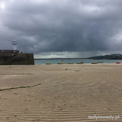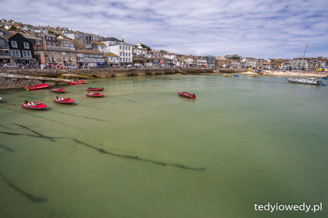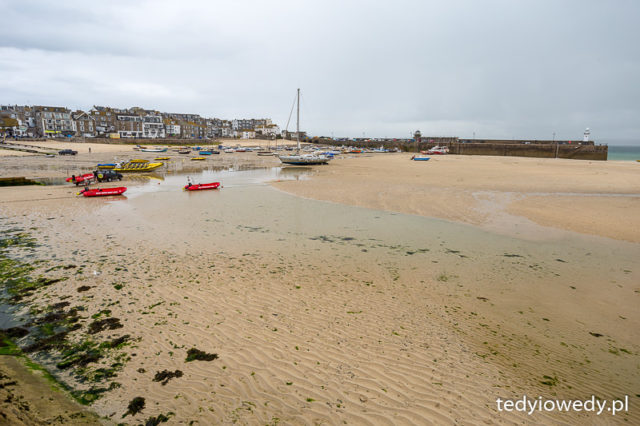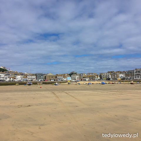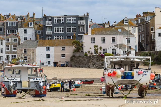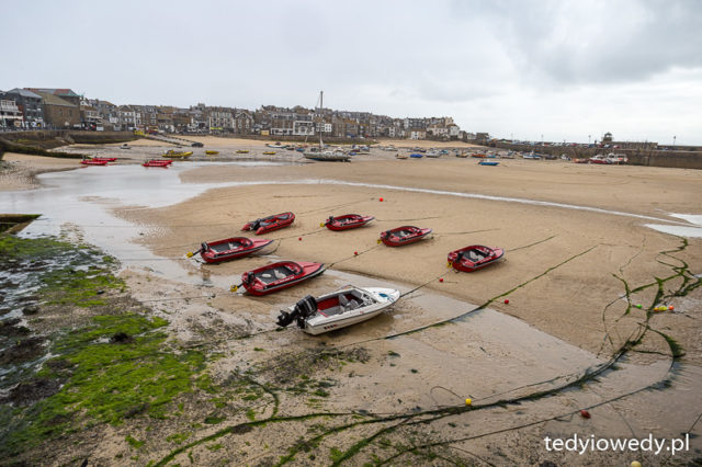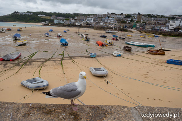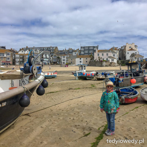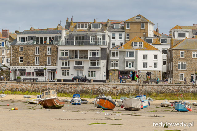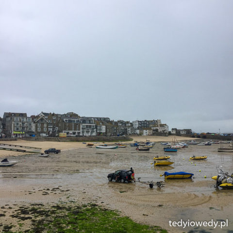Do St Ives dotarliśmy, gdy zaczynał się odpływ. Może powoli odchodziło, a na piaszczystym dnie portu wylegiwały się łodzie… Pływy to zjawisko, które już na zawsze kojarzyć mi się będzie z Kornwalią… I krzyki mew. I szary kamień, z którego zbudowane są tamtejsze domy.