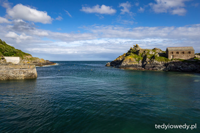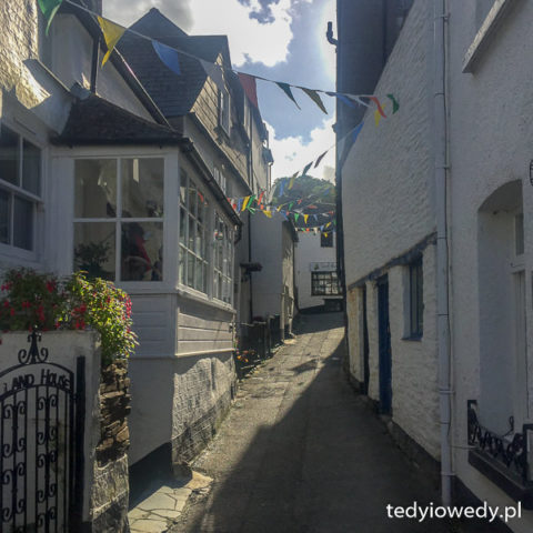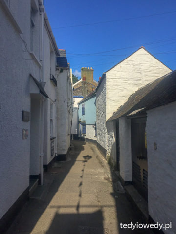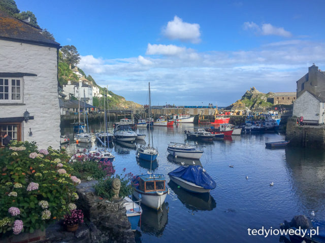 Po miłym spacerze pustymi uliczkami (Polperro jest mniej znanym kornwalijskim cudeńkiem – co zdecydowanie jest jego atutem – brak tłumów!), dotarliśmy do malowniczego portu, osadzonego w naturalnym „fiordzie” wrzynającym się w ląd. Znowu trafiliśmy na odpływ: