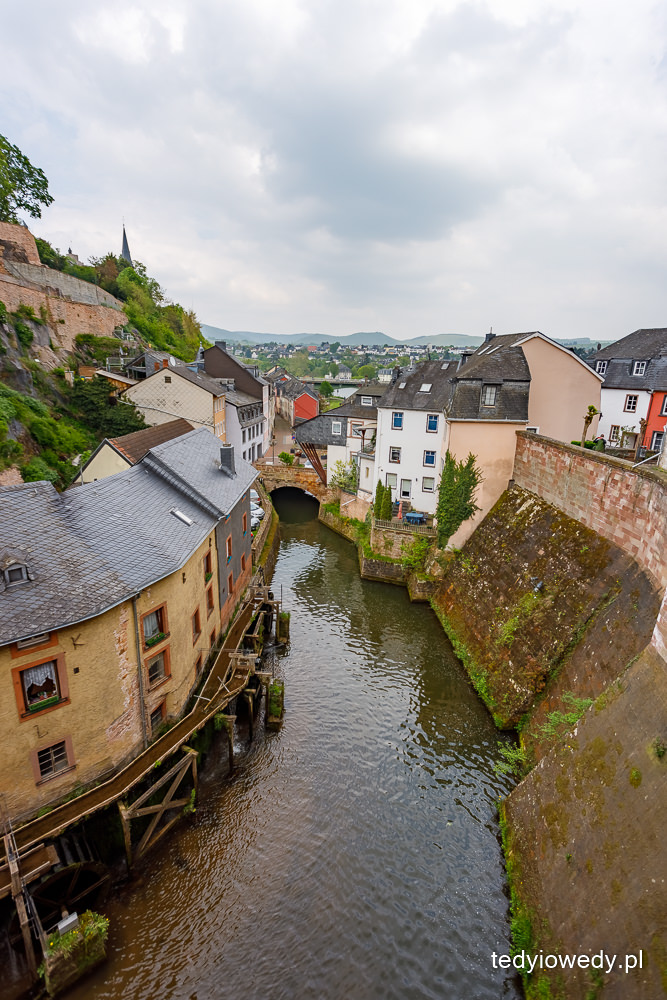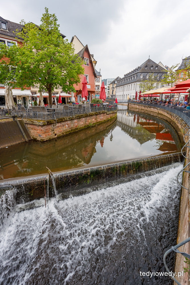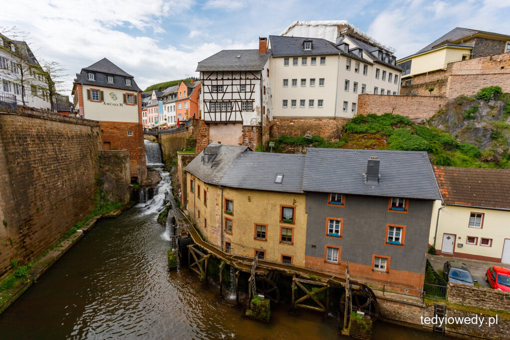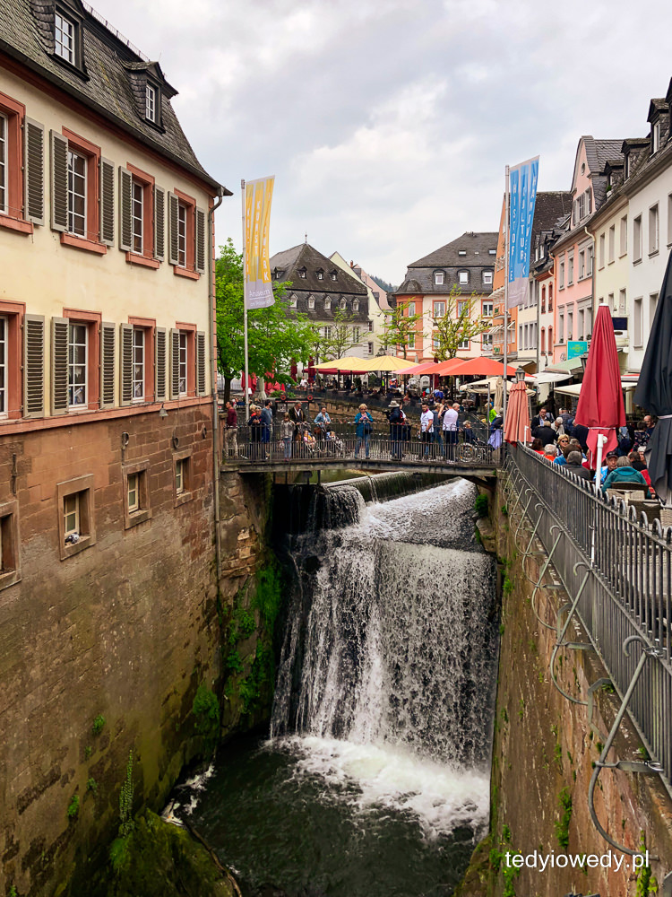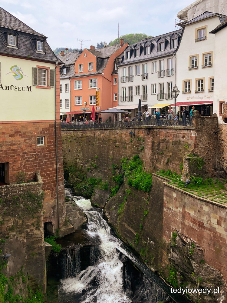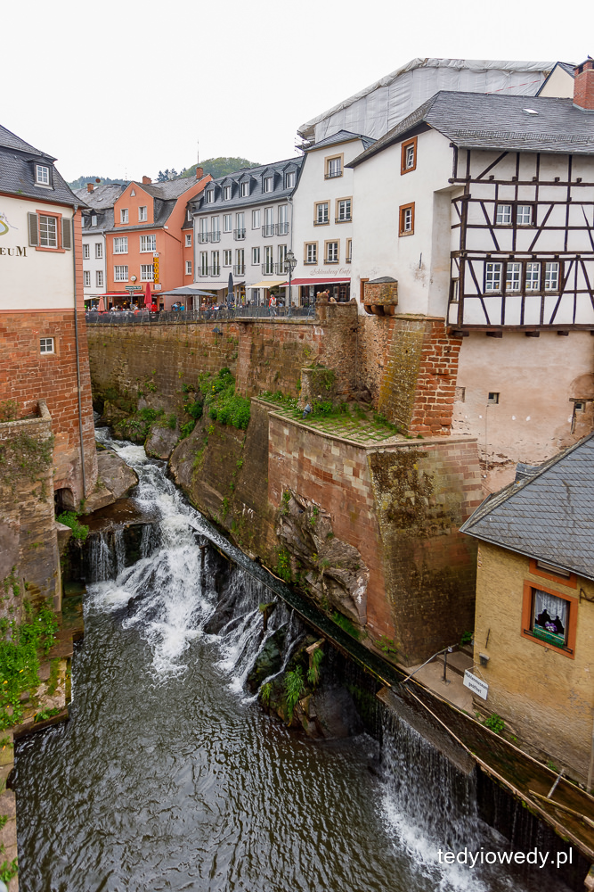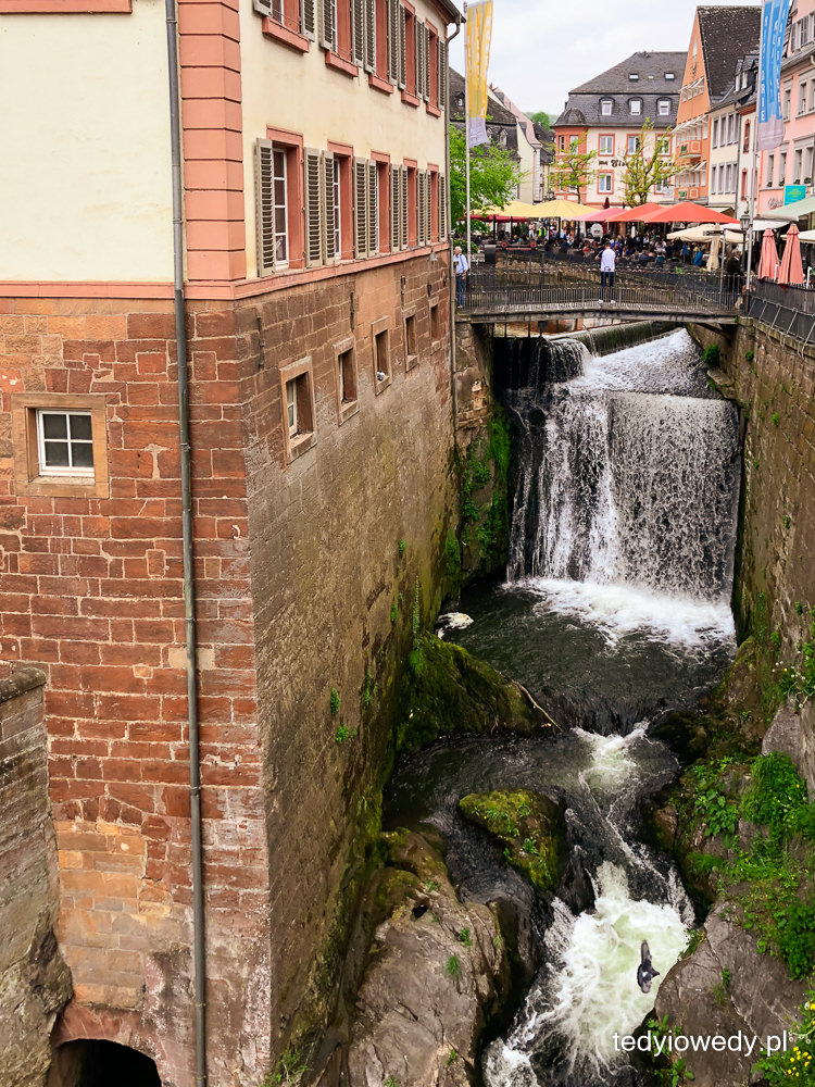Ale tym co przyciąga tłumy turystów (w tym i nas) jest wodospad w centrum miasta. Rzeka Leuk wpada do rzeki Saar tworząc 20-metrowy huczący wodospad. W XIII wieku przekierowano rzekę Leuk tak, aby przepływała przez centrum miasta, a nie jego obrzeżami. Wtedy powstały młyny stojące do dziś u podnóża wodospadu. W jednym z nich działa najstarsza turbina na świecie.